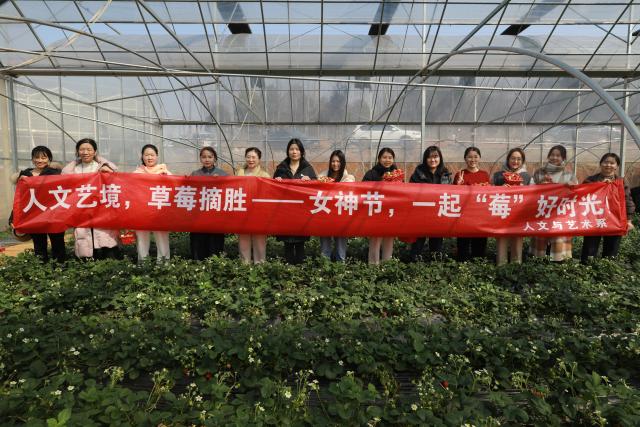 巾帼寻春意,觅得莓果香。3月7日,为庆祝即将到来的第115个“三八”国际妇女节,人文与艺术系组织全体女教师赴草莓园举办摘草莓活动。