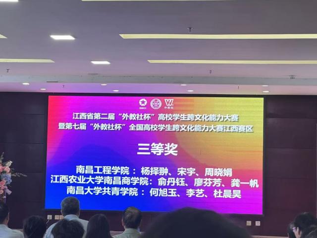 近日,在江西省第二届“外教社”杯高校学生跨文化能力大赛中,由外语系英语专业教师喻昕、张凤仙、吴超指导的学生团队,喜获省级三等奖的佳绩。获奖学生分别是英语2104班俞丹钰、新闻2201廖芬芳、新闻2302班龚一帆。此项比赛已纳入全国普通高校大学生竞赛排行榜目录的84项赛事。