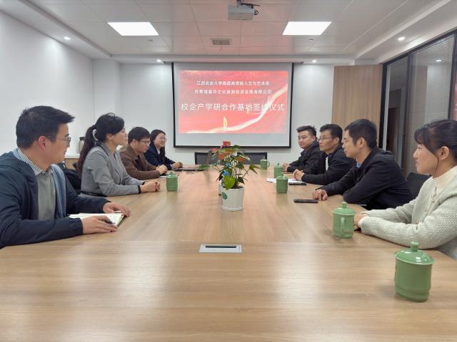会上,双方就合作共建江西农业大学人文与艺术系-共青城富华文化旅游投资发展有限公司产学研基地的相关事宜展开了友好讨论,并签订了《校企合作战略协议书》。