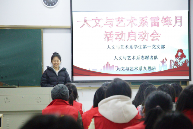 三月是一个春光明媚、生机勃勃的季节,对进一步学习和弘扬雷锋精神,扎实开展就业月课堂,3月5日下午,人文与艺术系举办雷锋月活动启动大会。我系学生第一党支部组织委员程继芳、学生党员、志愿者队和九思班参加此次活动。