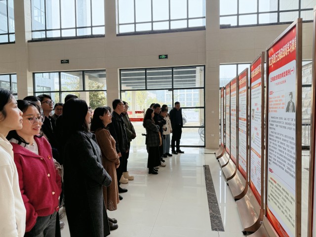 理论学习结束后,全体教职工前往明道楼一楼大厅,参观“坚守正确政绩观,勇担时代新使命”主题展览。大家在图文展板前驻足观看、交流感悟,进一步深化对正确政绩观的理解与认同。