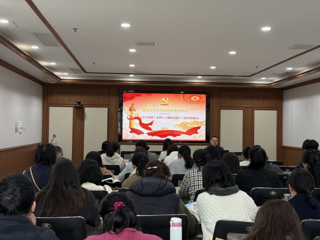 为强化全院教职工政治理论素养,树立正确政绩观、锤炼优良工作作风,3月26日下午,语言与文法学院在明道楼B203会议室开展政治理论学习,全院教职工参加。